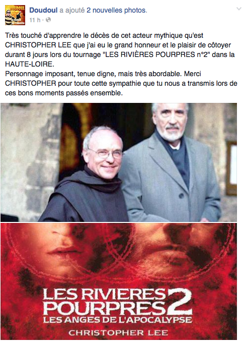Les nombreuses personnes qui connaissent l’artiste Doudoul savent combien, celui-ci prêtait une affection particulière à l’immense acteur. Leur rencontre date de l’époque du tournage du film « Les rivières pourpres 2 » et Doudoul s’est exprimé hier à de sujet sur son espace Facebook