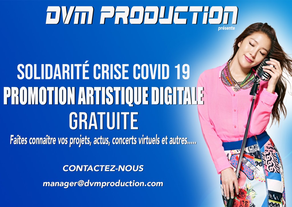 Par soucis de solidarité avec les artistes, l’équipe de DVM Production leur offre son soutien par le biais d’une promotion artistique digitale gratuite.
